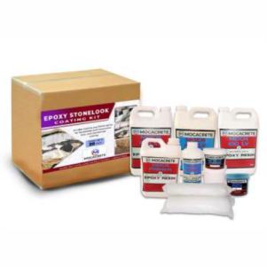 Epoxy Stonelook Coating kit is a commercial & residential grade, decorative epoxy flooring system containing enough product to cover 15-18sqm for floor coating. It consists of Moca Primer, Moca Colour Base, Moca 100 LV and Metallic Powder to achieve a metallic design on floor or countertop. All the components have been specifically selected to complement each other to produce a high quality, seamless stone look coating.